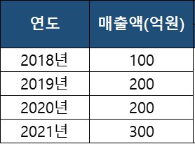 이는 2020년 매출액이 50억에서 2021년 300억 원으로 급격(500%)하게 증가했기 때문에