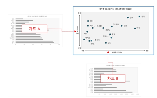 2022.09.01 - [보고서 작성기술/엑셀_차트(그래프) 작성법] - 보고서 차트작성기술 : 가독성 있는 차트 만드는 방법