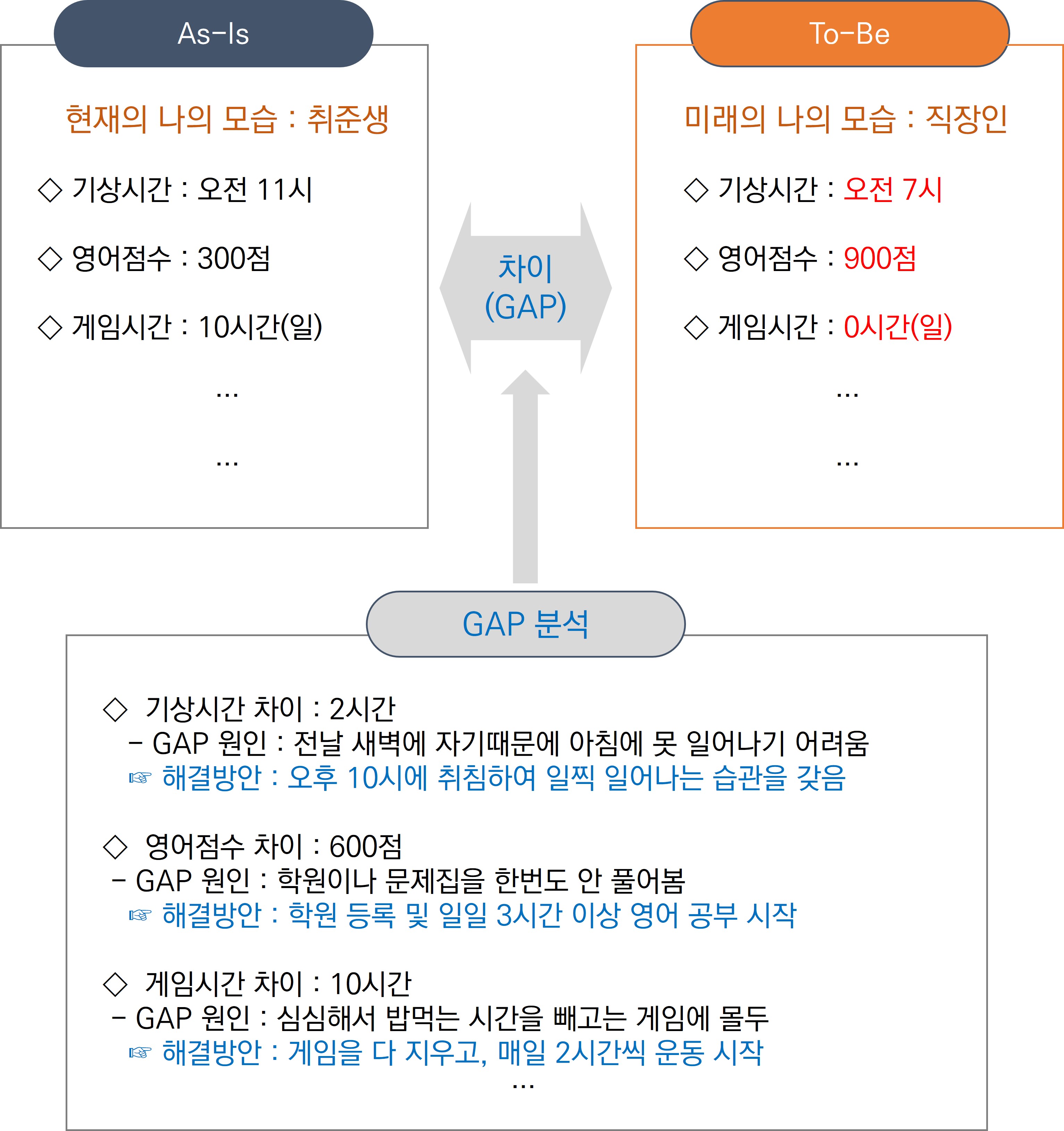 자신의 현재모습(As-Is)과 미래 모습(To-Be)을 그려보고,
