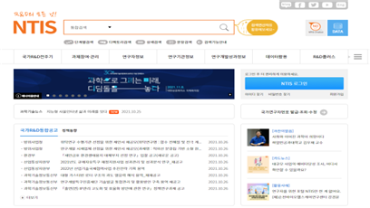 NTIS(https://www.ntis.go.kr/) 는 사업, 과제, 인력, 성과 등 국가연구개발 사업에 대한 정보를 한 곳에서 서비스하는 국가과학기술 지식정보 포털임