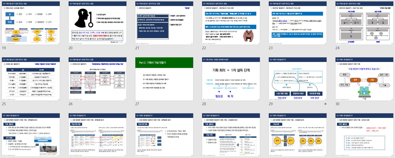 일상 생활에서는 설득해야 할 대상이 몇 명 안되기 때문에 굳이 문서가 필요하지 않지만 회사에서는 설득 대상이 많기 때문에 기획서라는 문서가 필요한 것입니다 .즉, 기획서는 이런 설득 과정의 흐름대로 작성하면 됩니다. (중략)