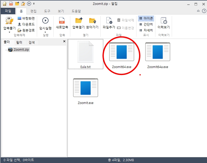 만약 32비트라면 "Zoomit.exe"를 선택하면 됩니다.