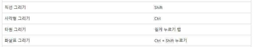Draw 기능의 기본적인 도형과 선은 아래 단축키를 이용하면 됩니다.