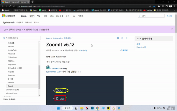 정말로 "줌잇(ZoomIt)" 프로그램 좋은 것 같습니다.