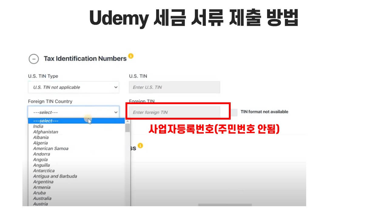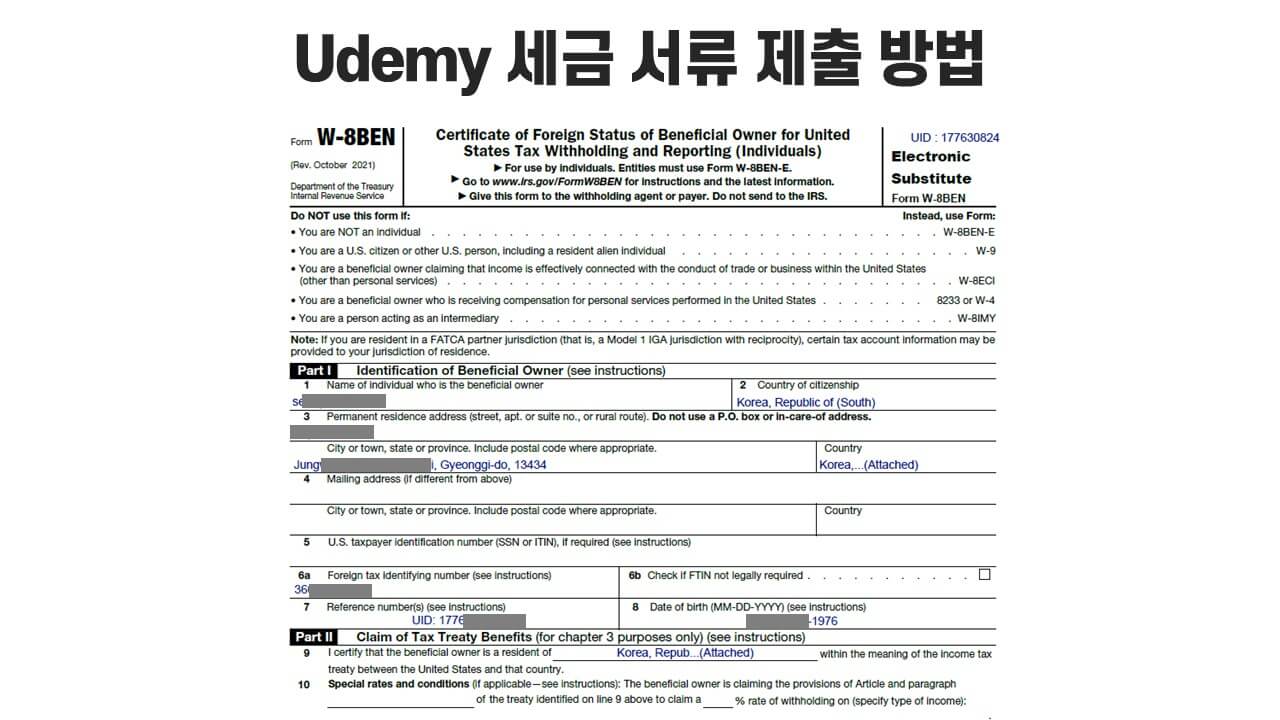 유데미로 강의로 수익을 올리고 있는 분들이라면, 얼마 전 세금서류를 제출하라고 메일이 왔습니다. 세금서류를 작성하는데 TIN(Tax Identification Numbers) 등 모르는 용어들이 많이 나오는데 어떻게 해야 하는지 유튜브, 블로그, 카페 등을 검색해도 쉬운 정보가 없죠. 그래서 이런 저와 같은 분들이 없기를 바라며 포스팅을 합니다.