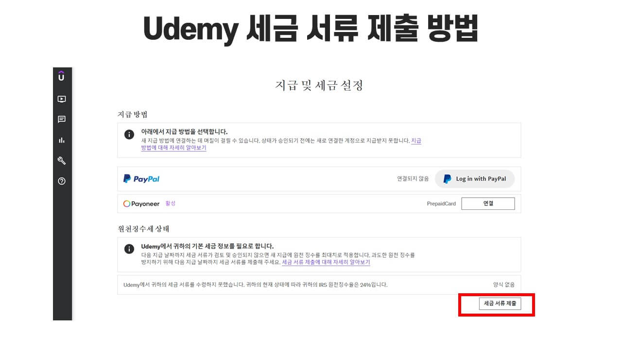 2. Udemy에서 "세금 서류 제출" 버튼 누르기