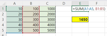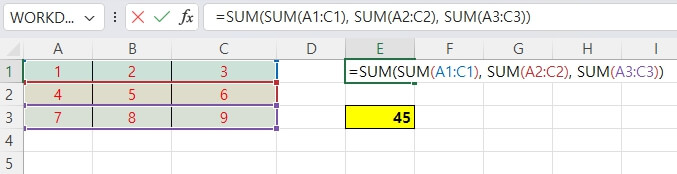 수식: =SUM(SUM(A1:C1), SUM(A2:C2), SUM(A3:C3))