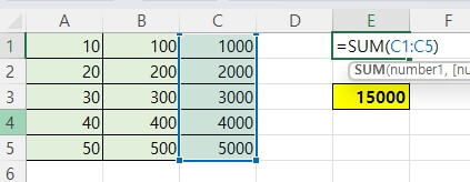 설명: C열에 있는 모든 숫자를 더해줍니다.