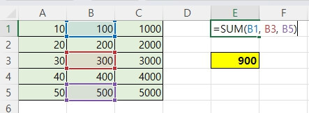 설명: B열의 1번, 3번, 5번 위치에 있는 숫자를 모두 더해줍니다.
