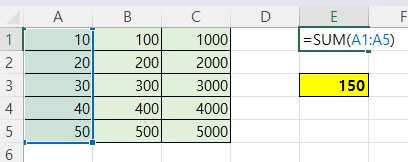설명: A열에 있는 모든 숫자를 더해줍니다.