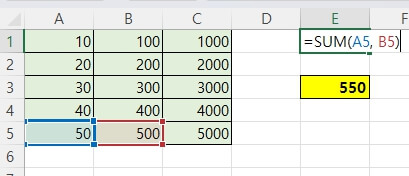 설명: A열과 B열에 있는 모든 숫자를 더해줍니다.