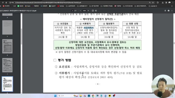 평가방법 중 요건검토는 증빙서류의 신청자격 여부이고, 서류평가는 사업계획서를 기반으로 평가를 합니다. 사업계획서를 기반으로 평가를 하는데 지원자가 많으면 사업계획서 양이 엄청나서 평가위원들이 일일이 다 검토하는 데는 한계가 있습니다.