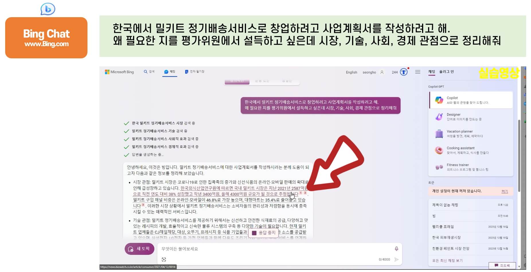 최근 데이터와 뉴스, 웹사이트를 조사해서 정리해 준다는 점에서 활용도가 높습니다.