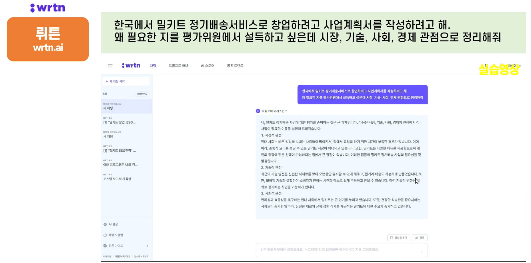 다음은 뤼튼입니다.