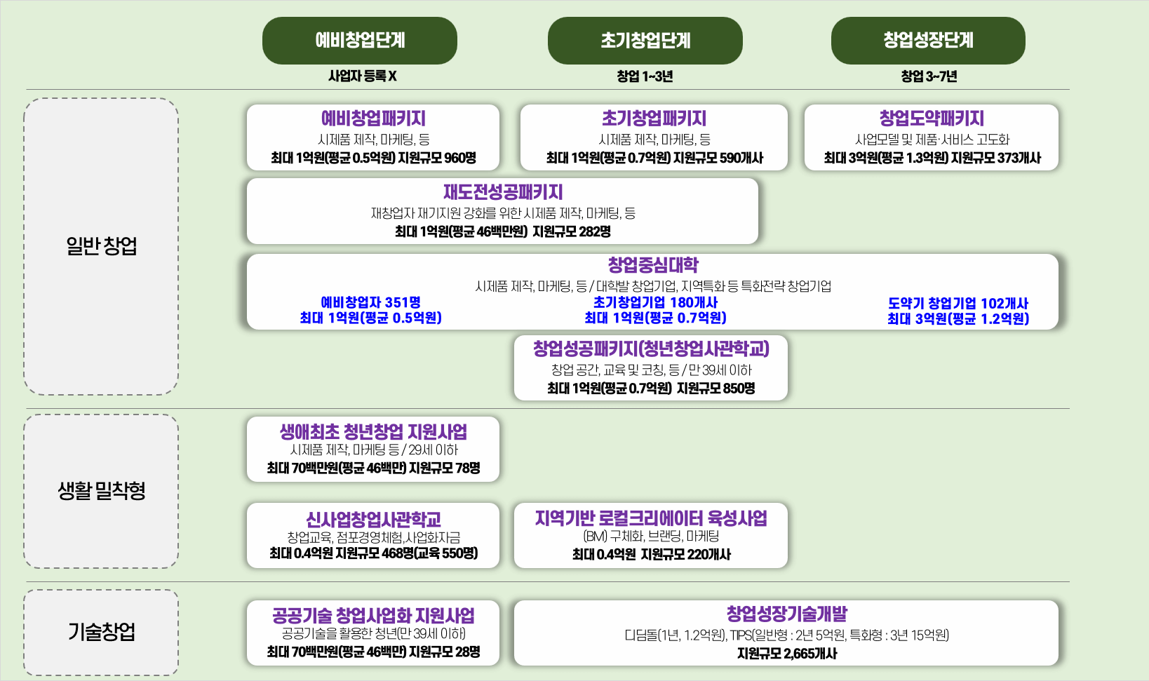 아래 도형은 정부의 창업지원사업 중에서 창업자들이 가장 많이 신청하고, 관심 갖는 사업들입니다. 이들의 공통점을 알고 계신가요?