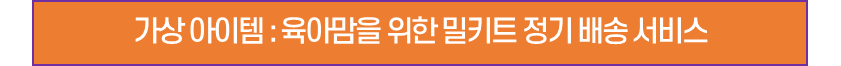 본격적인 시작에 앞서 가상의 창업아이템을 선정하였다. 사업계획서 처음부터 끝까지 진행할 가상 아이템은 “육아맘을 위한 밀키트정기 배송서비스”이다.