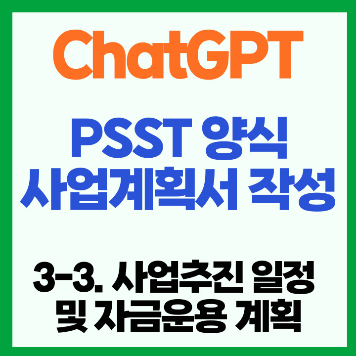 이번 포스팅은 성장전략 파트 중 "3-3. 사업추진 일정 및 자금운용 계획"입니다. 쳇GPT(chatgpt), 빙쳇(BingChat)을 활용한 정부지원사업 사업계획서 작성 방법에 대한 많은 관심으로 온라인, 오프라인 강의를 진행하고 있습니다. 생각보다 많은 분들이 관심을 보이셨는데 블로그를 방문하시는 분들에게도 도움이 되고자, 집에서 순차적으로 실습을 할 수 있도록 각 목차별로 포스팅을 하고 있습니다.
