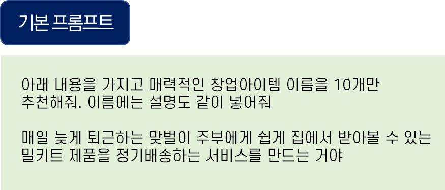 이번에는 좀 더 구체적으로 프롬프트를 작성해 보자. 역할도 주고, 아이템명을 만들 때 주의사항을 모두 나열하여 종합적인 관점에서 아이템명을 추천해달라고 해보았다.