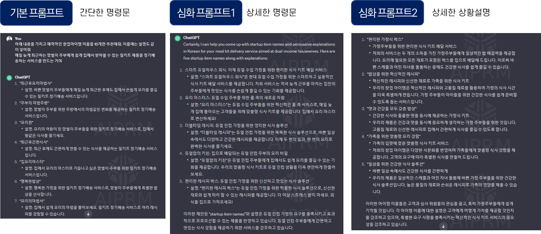 3가지 결과를 비교하면 결과물의 수준을 한눈에 확인할 수 있다. 이 중에서 하나를 선택하여 약간의 의견을 넣어서 사용해도 괜찮을 것이다.