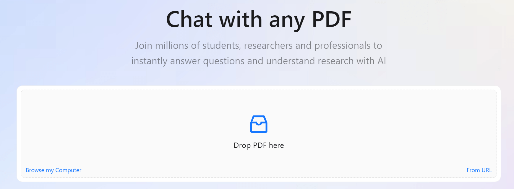 세 번째로 이제 변환한 PDF 파일은 Chatpdf사이트에 업로드하자.