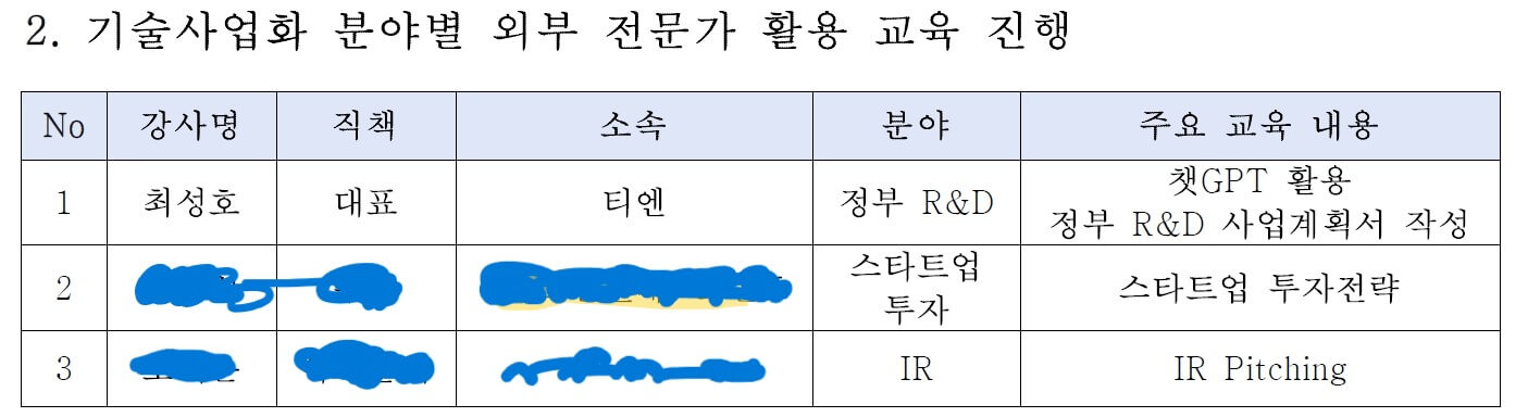 제 강의는 기술사업화 분야 중 외부 전문가 입장에서 진행하게 되었습니다.