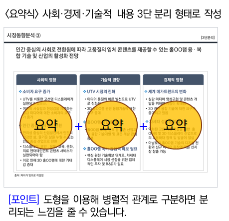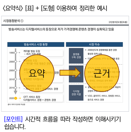 따라서, 우측과 같이 ‘동향’이라는 제목에 맞춰 좌측 자료를 ‘흐름’ 식으로 작성해야 합니다.