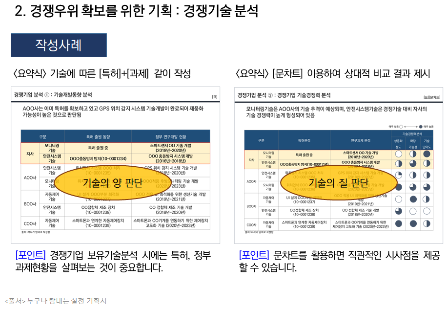 경쟁기업의 기술현황을 분석한 ppt 작성 사례입니다.