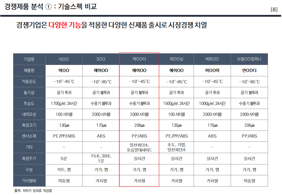 그래서 경쟁제품 분석을 통해 경쟁기업의 기술력을 가늠해보는 것이죠.