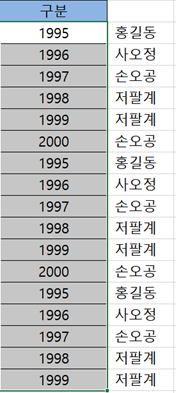 ❷ 데이터 전체를 분리해야 하기 때문에 서식을 Ctrl+C로 서식 복사하여