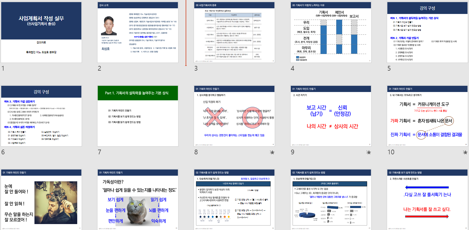 기업에서 기획자로서 필수적으로 갖춰야 할 사업계획서 작성 스킬을 익히고,