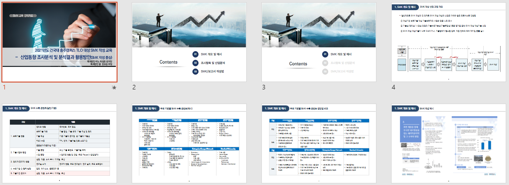 강의 내용 : 기술사업화 마케팅을 위한 SMK 작성 / 사업계획서 작성 실무