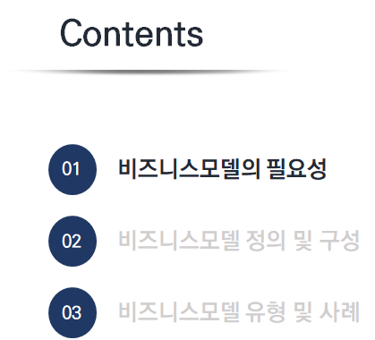 전체적으로 "비즈니스 모델이 이런 것이다!"라는 것을 느낄 수 있도록 목차를 구성했죠.