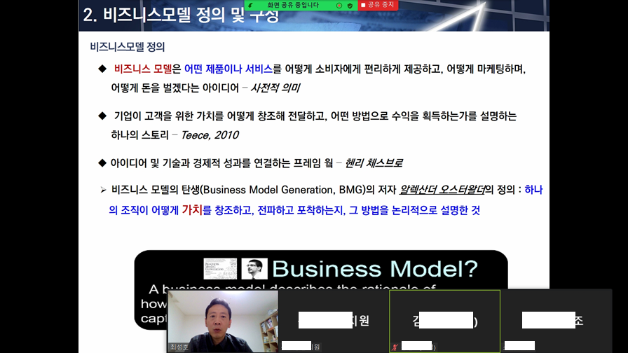 다음으로 "비즈니스 모델이 무엇이고, 무엇으로 이루어지는지"에 대해 설명했습니다.