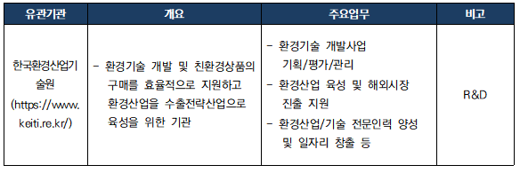 한국환경산업기술원을 통해 환경분야 R&D 및 신기술 지원을 추진하고 있습니다.
