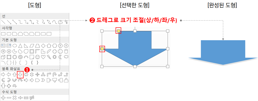 ② [블록 화살표]에서 도형을 선택한다.